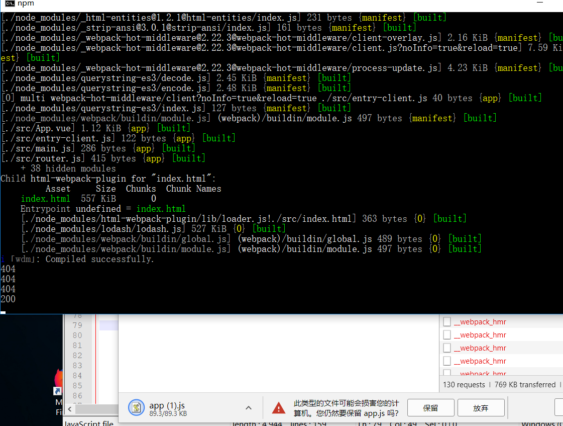 OK这下知道了什么回事了!404是因为那个webpack-hot-middleware 更新页面吧(我预感是这样的,因为设置了5second)