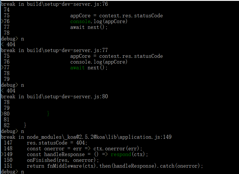 这图是一个请求一个静态资源的时候,返回的404。那应该可以推断出koa框架的中间件,当遇不到其他中间件的时候,但是你